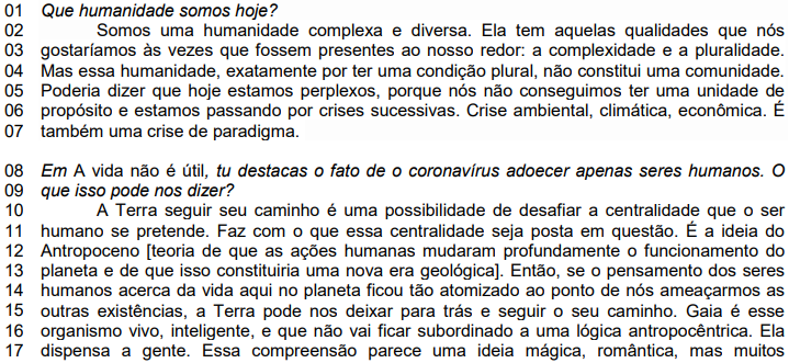 KRENAK, Ailton. Entrevista feita por Anna Ortega. Jornal da Universidade, 12 de novembro de 2020. Disponível em: www.ufrgs.br/ jornal/ailton-krenak-a-terra-pode-nos-deixar-para-tras-e-seguir-o-seu-caminho. Acesso em: 15 jan. 2023. [Adaptado].