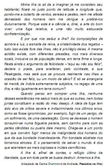 II. No 2o parágrafo, todas as razões aventadas para explicar a irresistível sedução de uma ilha são consideradas essenciais, não havendo como entender essa atração sem se recorrer a elas.