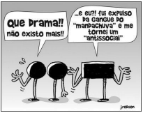 Observe a charge abaixo e assinale a alternativa que preencha correta e respectivamente as lacunas do enunciado.