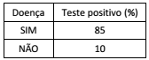 De um grupo de controle para o acompanhamento de uma determinada doença, 4% realmente têm a doença. A tabela a seguir mostra as porcentagens das pessoas que têm e das que não têm a doença e que apresentaram resultado positivo em um determinado teste.
