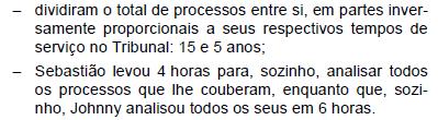 Ao saber que alguns processos deviam ser analisados, dois Analistas Judiciários do Tribunal Regional do Trabalho - Sebastião e Johnny - se incumbiram dessa tarefa. Sabe-se que: