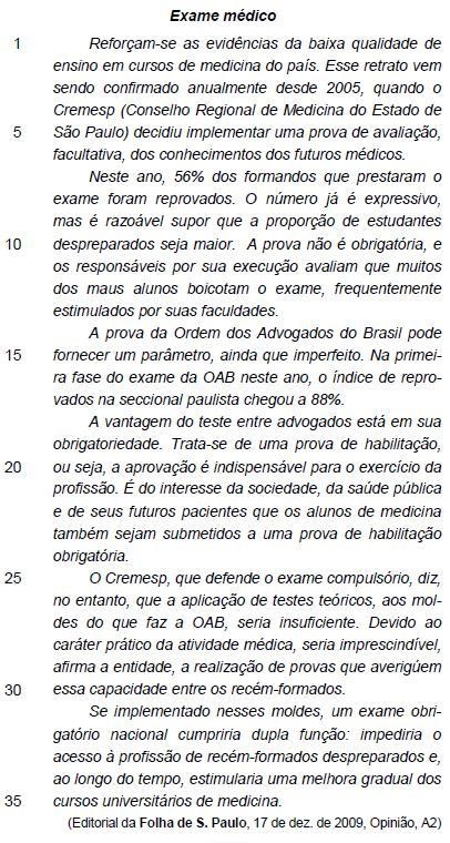 Se implementado nesses moldes, um exame obrigatório nacional cumpriria dupla função: impediria o acesso à profissão de recém-formados despreparados e, ao longo do tempo, estimularia uma melhora gradual dos cursos universitários de medicina.
