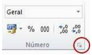 (Comando A a Z) para executar uma classificação decrescente (Z a A ou do número maior para o menor). III - Para formatar números, selecione as células que você deseja formatar. Depois, na guia Página Inicial, no grupo Formatar, escolha o Iniciador de Caixa de Diálogo ao lado de Número (ou apenas pressione Ctrl+10), conforme a figura abaixo. Em seguida, na lista Categoria, clique no formato desejado e, se necessário, ajuste as configurações.