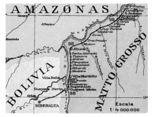 A figura anterior retrata o traçado da ferrovia Madeira Mamoré, conforme o mapa da estrada de ferro Madeira-Mamoré, em 1937, parte do Mappa da Viação Ferrea dos E.U. do Brasil , Guia Levi. Considerando a figura e as informações apresentadas, assinale a opção correta.