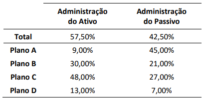 Uma EFPC administra quatro planos de benefícios de caráter previdenciário, que compartilham uma mesma estrutura para a gestão dos planos. A EFPC utiliza uma metodologia de rateio das despesas administrativas comuns aos planos de benefícios para fins de registro contábil no Plano de Gestão Administrativa. Conforme determinação normativa, a EFPC divulga nas Notas Explicativas às Demonstrações Contábeis os critérios que ela utiliza para o rateio das despesas administrativas entre os planos de benefícios, conforme quadro a seguir: