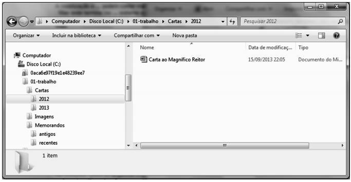 Com relação ao sistema operacional Windows 7, à figura acima — que mostra uma janela desse software — e a conceitos de organização e de gerenciamento de informações, arquivos e pastas nesse software, julgue os itens que se seguem.