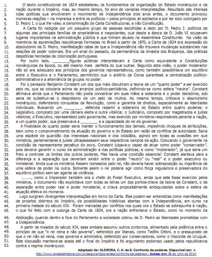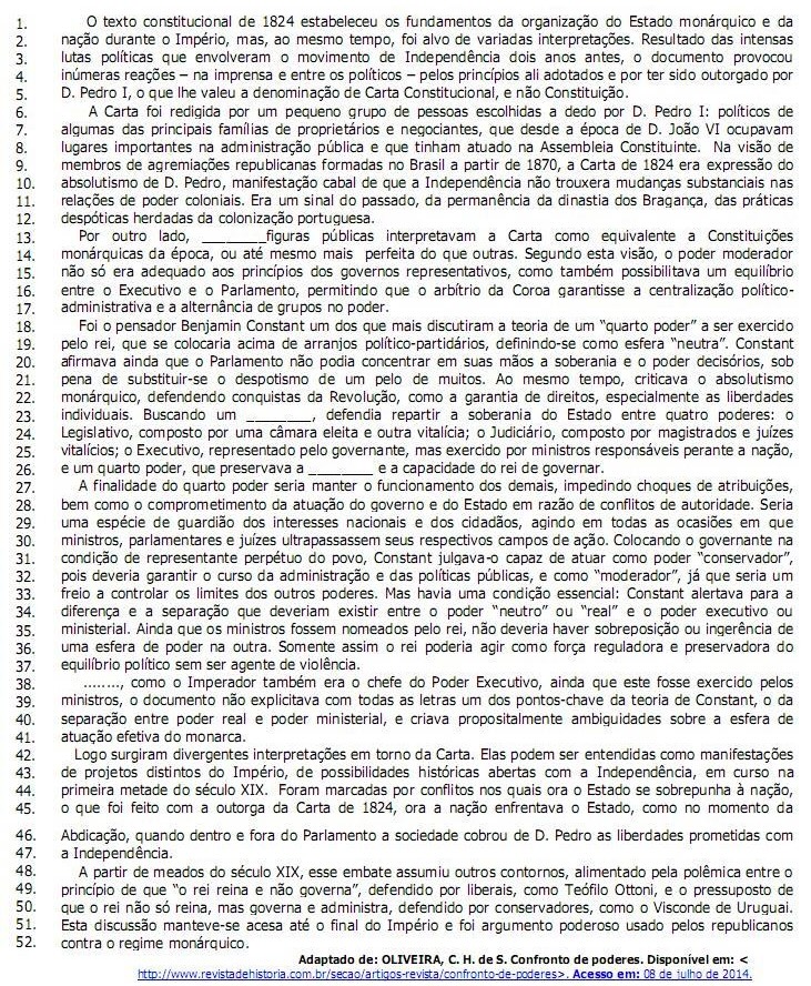 2 - procura informar o leitor sobre as diferentes interpretações acerca do poder atribuído ao rei na Carta Constitucional de 1824.