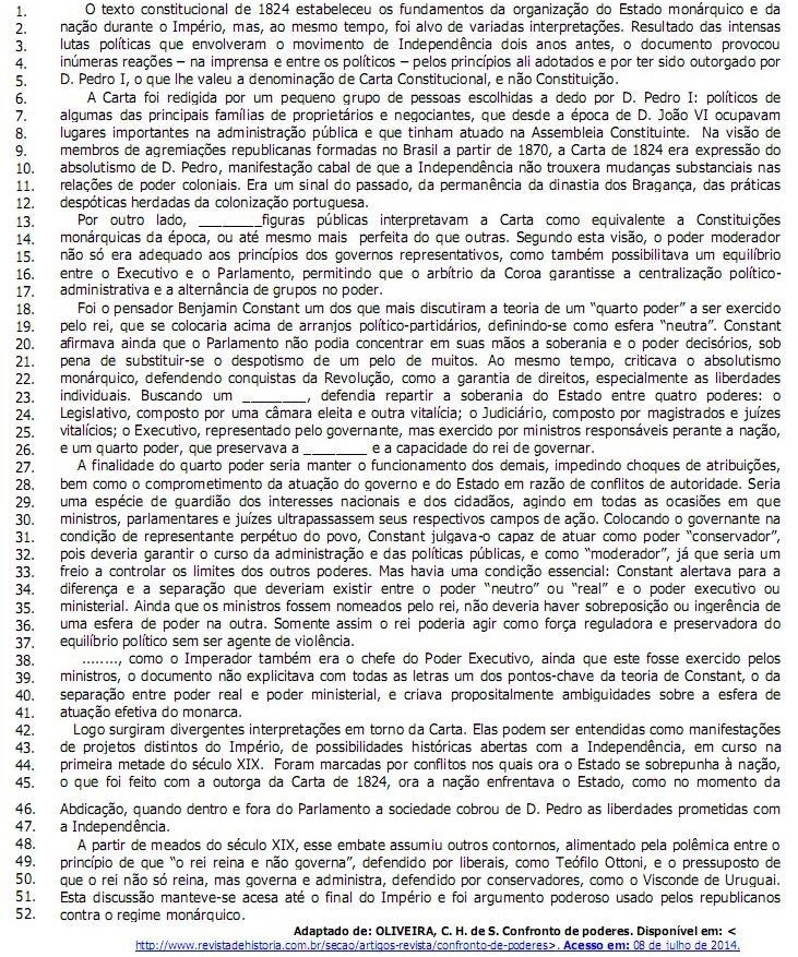 4 - posiciona-se a favor do poder moderador que garantia ao rei, chefe do poder ministerial, intervir em qualquer questão pública.