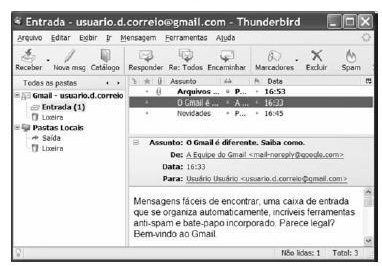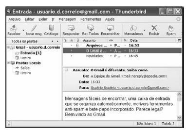 O Mozilla ThunderbirdTM 2 permite que sejam armazenadas mensagens de correio eletrônico em pastas específicas, que podem ser criadas pelo próprio usuário. Na janela do Mozilla ThunderbirdTM 2 ilustrada no texto, o usuário pode criar suas próprias pastas a partir de opção encontrada no menu