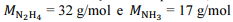 sejam as massas molares da hidrazina e da amônia, respectivamente, a variação de entalpia envolvida na quebra da amônia, caso o rendimento da reação tivesse sido de 100%, seria