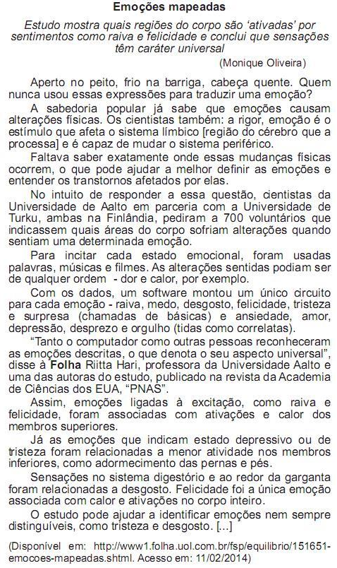 excitação, como raiva e felicidade, “, ocorre a contração da preposição “a” com o artigo “a”. A ocorrência da preposição deve-se a uma relação de regência, na qual o termo regente é: