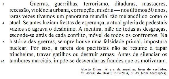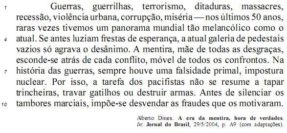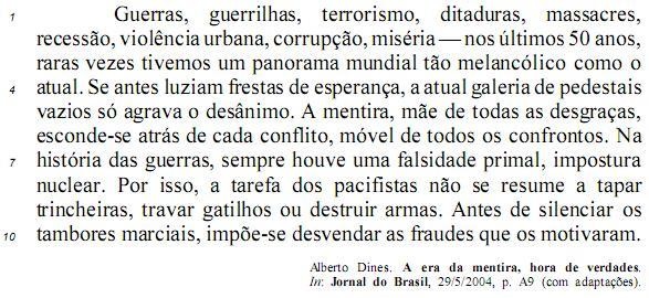 A “mentira, mãe de todas as desgraças,” (l.5) não esteve presente no episódio da invasão do Iraque. O motivo alegado pelos EUA para atacar esse país — a existência de arsenal de armas de destruição em massa — foi plenamente comprovado.
