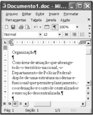 Considerando a figura acima, que ilustra uma janela do Word 2002 em execução em um computador do tipo PC, julgue os itens a seguir.