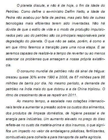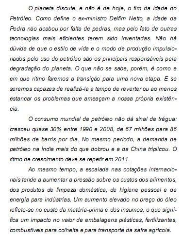 O consumo mundial de pétroleo não dá sinal de trégua: cresceu quase 30% entre 1990 e 2008, de 67 milhões para 86 milhões de barris por dia . (2º parágrafo)