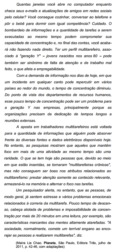 III. " A sociedade, normalmente, comete um terrível engano ao encorajar as pessoas a realizarem multitarefas ."