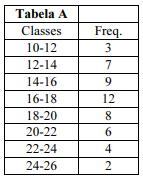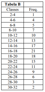 Com base nas tabelas de frequência A e B apresentadas anteriormente, julgue o item a seguir. Considerando a aproximação das séries A e B para uma Curva Normal, a probabilidade de os valores de ambas as distribuições estarem entre aproximadamente dois desvios-padrão de suas respectivas médias é de 95%.