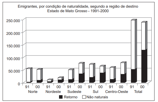 Entre 1970 e 1990 a imigração em Mato Grosso foi bastante significativa, com taxas anuais de 6,6% entre 1970 e 1980 e de 5,4% entre 1980 e 1990. Todavia, a partir de 1990 o influxo populacional diminuiu no estado. Em paralelo ao movimento de chegada, a emigração também ocorria.