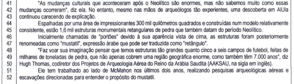 Embora os historiadores estejam familiarizados com as ruínas das cidades de cerca de 2.000 anos de Hegra e Dadan, localizadas na Rota do Incenso (as tumbas e monumentos de Hegra são Patrimônio Mundial da Unesco), eles não tinham muito conhecimento sobre a civilização que veio antes — até agora. (linhas 18 a 20)