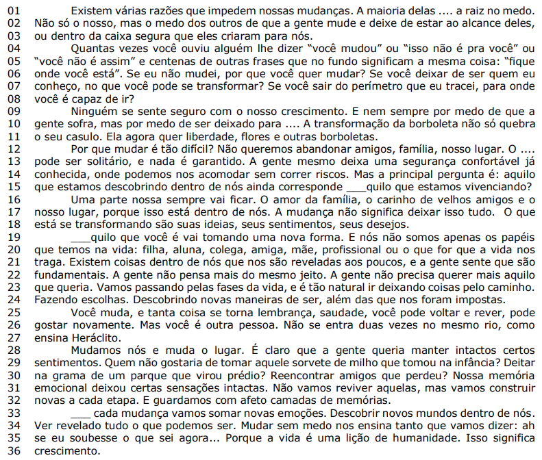 I. Para a autora, as mudanças que se operam em nós assustam quem está ao nosso redor por nos transformarmos em algo diferente do que é confortável para essas pessoas.
