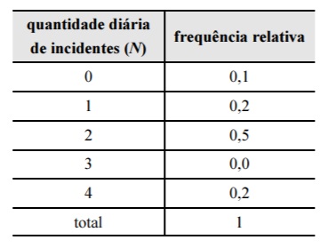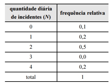 Considerando os dados da tabela mostrada, que apresenta a distribuição populacional da quantidade diária de incidentes (N) em determinada penitenciária, julgue o item que se segue.