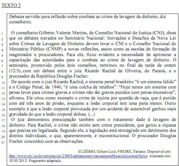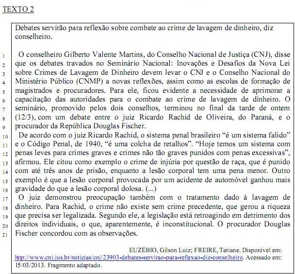 Em relação ao período da questão anterior “Ele citou como exemplo o crime de injúria por questão de raça, que é punido com até três anos de prisão, enquanto a lesão corporal tem uma pena menor” (linhas 13 e 14) a expressão destacada pode ser substituída por visto que.
