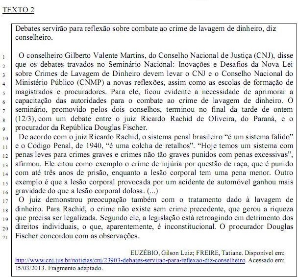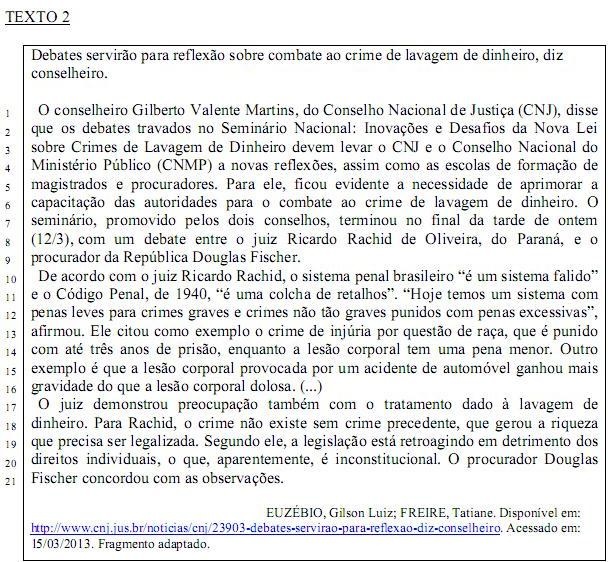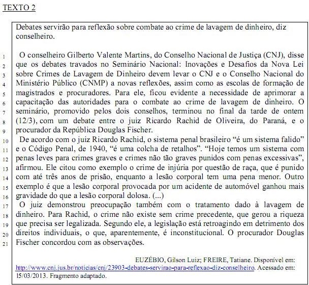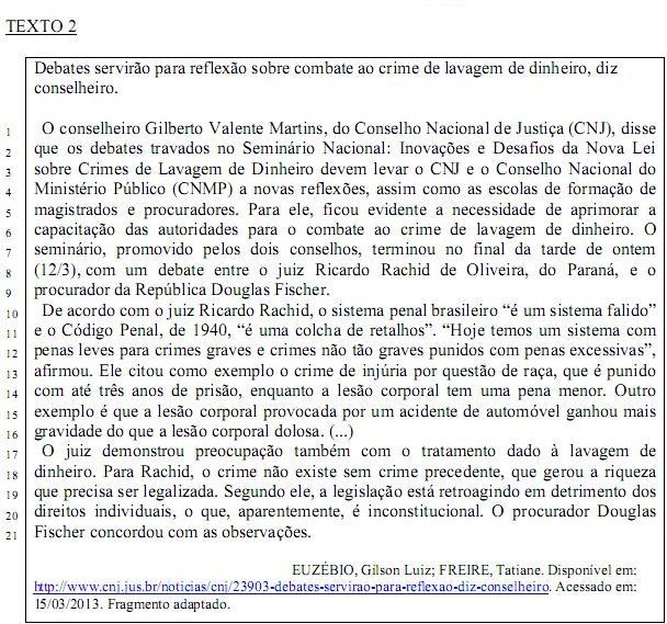 De acordo com o juiz Ricardo Rachid, o sistema penal brasileiro “é um sistema falido” e o Código Penal, de 1940, “é uma colcha de retalhos” (linhas 10 e 11).