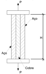 Sabe-se que a altura H do conjunto é de 2,0 m e os módulos de elasticidade longitudinal do aço e do cobre valem, respectivamente, 200 GPa e 120 GPa.