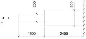 Um eixo é formado por dois cilindros com diâmetros de 200 mm e 400 mm como indicado na figura a seguir. Dimensões em mm.