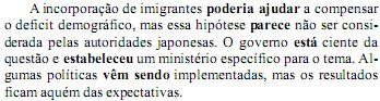 Na frase – A incorporação de imigrantes poderia ajudar a compensar o deficit demográfico, mas essa hipótese parece não ser considerada pelas autoridades japonesas. – o termo mas
