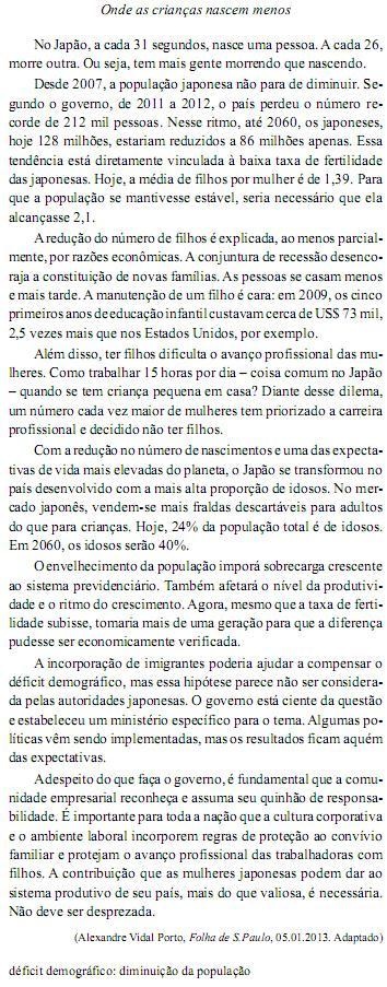 Com a frase do quinto parágrafo – No mercado japonês, vendemse mais fraldas descartáveis para adultos do que para crianças. – o autor reforça a ideia de que