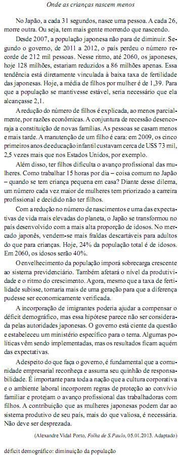 Assinale a alternativa em que o termo para expressa ideia de finalidade, assim como o destacado na frase do segundo pa rágrafo – Para que a população se mantivesse estável, seria necessário que ela alcançasse 2,1.