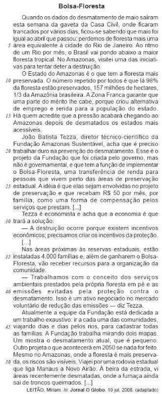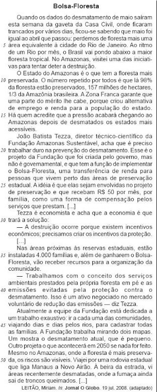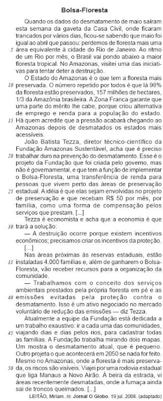 ( ) O conceito da palavra "incentivos" é igual nas expressões "incentivos econômicos" (l. 31-32) e "incentivos de proteção" (l. 32).
