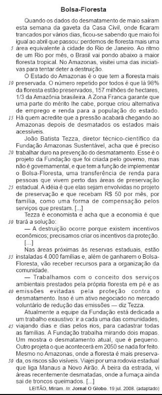 ( ) Tanto a destruição da floresta quanto a sua proteção dependem de medidas econômicas.