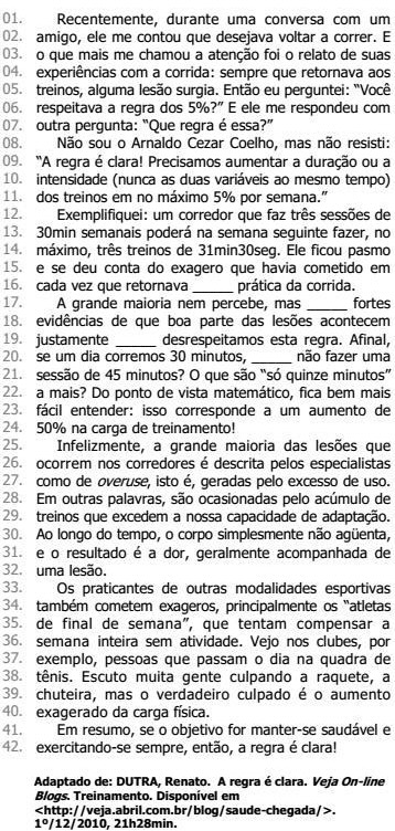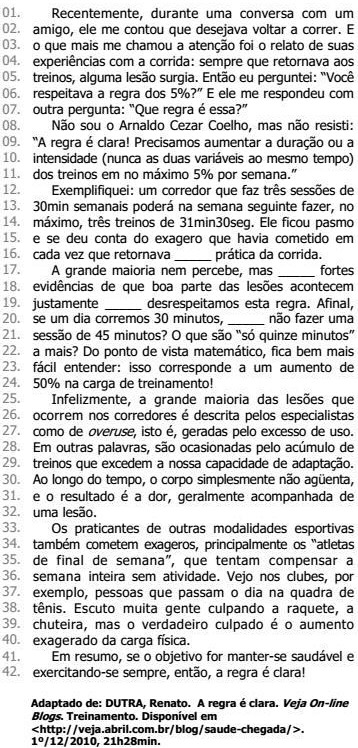 III - Suprimir a vírgula que segue “atletas de final de semana” (l. 34-35).