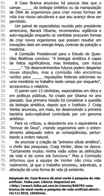 I - A Comissão Presidencial, em seu relatório, não identificou a necessidade de se adiarem as pesquisas no campo da biologia sintética.