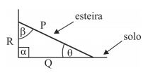 Nos aeroportos, em geral as esteiras rolantes de entrega de bagagens são inclinadas para facilitar o acesso às bagagens pelos usuários. A figura a seguir modela um trecho dessas esteiras: o triângulo, em que os lados medem P metros, Q metros e R metros, é retângulo em α.