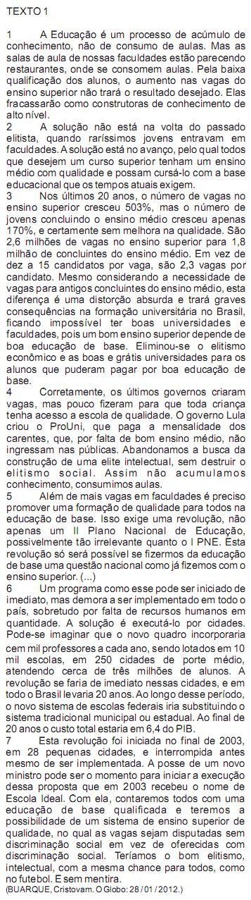 Para tornar mais evidente que concorda, até certo ponto, com opinião divergente, o autor poderia ter introduzido o enunciado: “A lição extraída dessa passagem talvez não seja o suficiente para levar a sociedade a refletir sobre o significado das favelas na estrutura da cidade” (parágrafo 1), por qualquer das expressões a seguir, EXCETO: