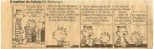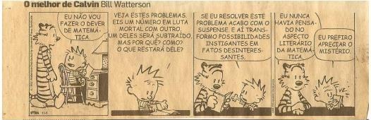 No segundo quadro, Calvin, ao questionar sobre a resolução de um problema de matemática, emprega a forma “por quê” . A língua portuguesa apresenta diferentes casos em que se utilizam as formas por que, por quê, porque e porquê. Preencha com as formas adequadas as lacunas do excerto da crônica “Na Escola”, de Carlos Drummond de Andrade.