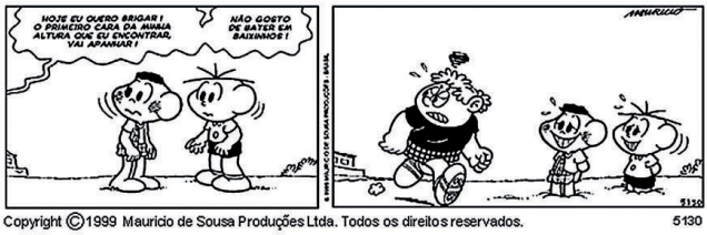 III. Na primeira fala ("Hoje eu quero brigar!), a forma verbal "quero" sugere que não há motivos para a briga, apenas é uma vontade do personagem.