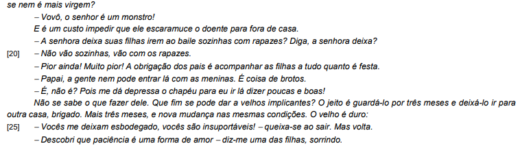 A voz de um personagem mescla-se à voz do cronista, configurando o chamado discurso indireto livre, no seguinte trecho: