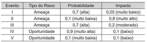Considere o diagrama de rede do cronograma de um projeto, apresentado a seguir, que contém cinco atividades (A, B, C, D e E). O tempo indicado nas setas está especificado em semanas.