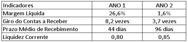 ( ) O contas a receber teve uma piora em sua performance, chegando a cair 55% entre o ano 1 e o ano 2.