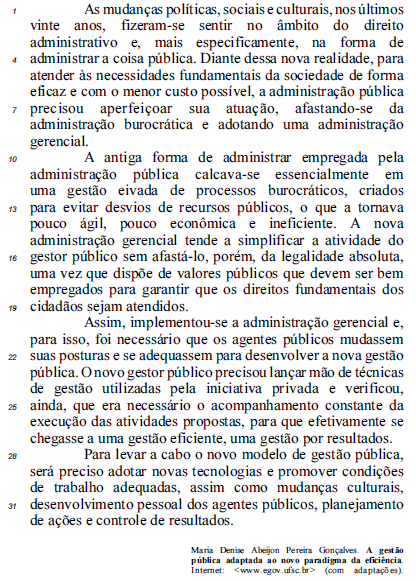 De acordo com as ideias do texto A gestão pública adaptada ao novo paradigma da eficiência,