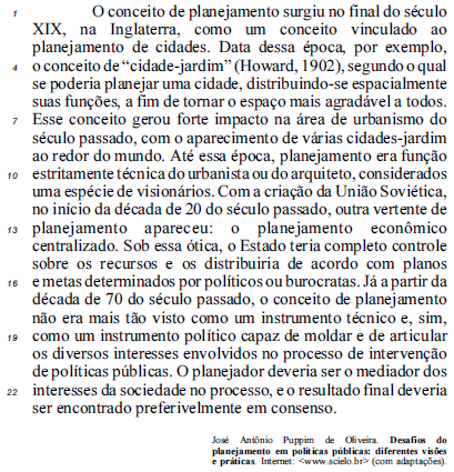 Considerando as estruturas linguísticas e os sentidos do texto anterior — Desafios do planejamento em políticas públicas: diferentes visões e práticas —, julgue o próximo item.
