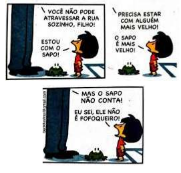 Para responder à questão, leia a tirinha a seguir. Em seguida, faça o que se pede: