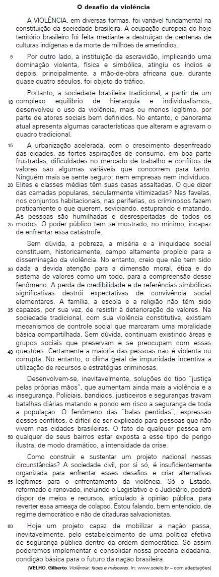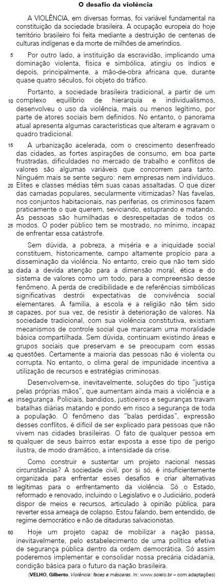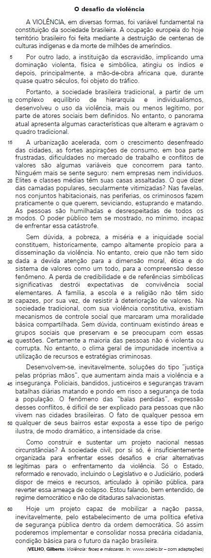I. Diferentemente do passado, atualmente deve-se incluir, no conjunto das reflexões acerca das causas da violência, a crise no âmbito dos valores institucionais.