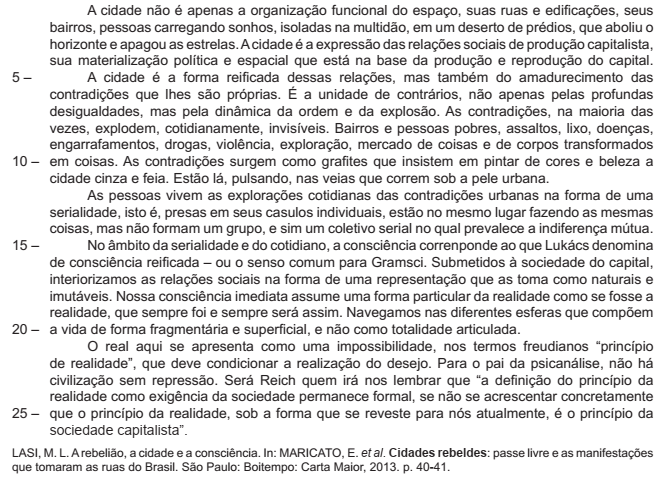 A afirmativa “Para o pai da psicanálise, não há civilização sem repressão.” ( l. 22-23) constitui a opinião de uma voz citada no texto e referendada pelo autor.