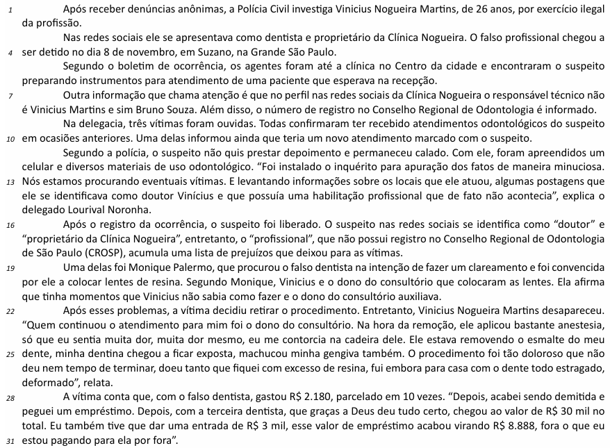 De acordo com o texto, julgue o item seguinte. A oração “que não possui registro no Conselho Regional de Odontologia de São Paulo (CROSP)” (linhas 17 e 18) é uma subordinada adjetiva explicativa.