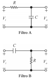 Para os mesmos valores de R e C, o filtro B possui uma frequência de corte superior ao filtro A.