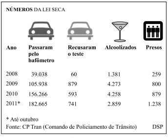 Os números mostram a ineficácia do atual Código de Trânsito.No ano seguinte à implantação da Lei Seca, quando a fiscalização marcava presença nas ruas e os veículos de comunicação a divulgavam, houve uma redução de 1,8% nas mortes de trânsito.